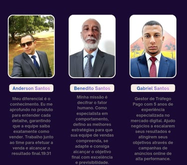 Equipe Potencializada: Sua equipe comercial recebe Leads prontos para conversão, elevando o foco e a motivação para fechar negócios. Nosso Foco: Unir tráfego inteligente, Leads certos e uma equipe de vendas no topo para o crescimento contínuo do seu faturamento.